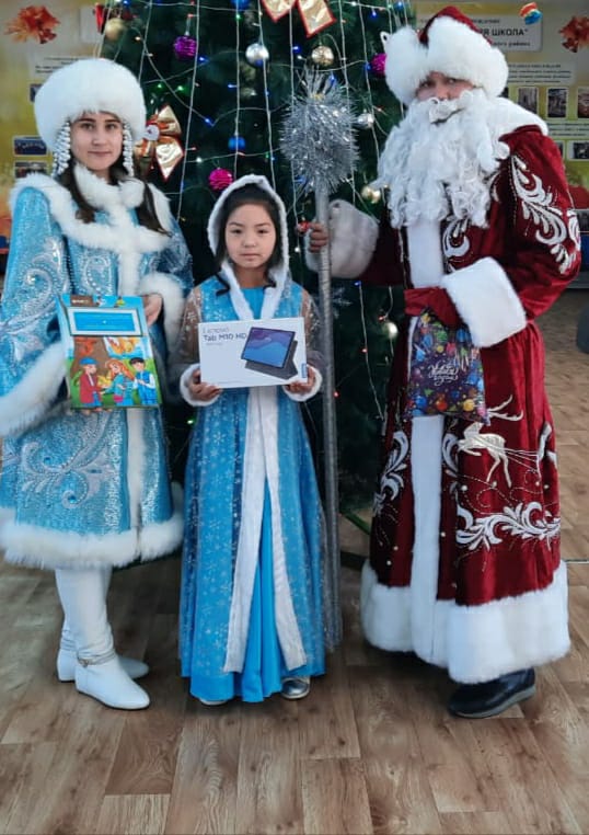 24 желтоқсанда Мемлекет басшысының атынан «Жарқыра, жайна жаңа жыл – Тәуелсіз қазақ елінде» атты құттықтаулар және сыйлықтар табыс етілді. Қарасу ауданының 9 жастан 13 жасқа дейінгі жетім балалар, ата–анасының қамқорлығынан айырылған балалар, оқуда, спортта, шығармашылықта немесе қоғамдық өмірде жетістікке жеткен аз қамтылған және көп балалы отбасылардан шыққан он екі оқушысы сыйлық жиынтықтарын алды, оған Қазақстан Республикасы Президентінің атынан құттықтау ашықхаты, планшет, тәтті сыйлық және «Самұрық құсының Сиқырлы қаламы» кітабы (Қазақстанның киелі географиясы туралы кітап) кірді. Төрт бала оқу озаттары: Ижаева Танзила, Муносибшоев Рустам, Гаврилюк Александр, Шоқай Бауржан, сегіз - республикалық, облыстық олимпиадалардың, конкурстардың, жарыстардың жүлдегерлері: Итаев Рамзан, Мұстафина Аружан, Батталова Анель, Елькина Кира, Ковалева Дарья, Адамян Арэвик, Симакина Данил, Төлебаев Нұрлан.