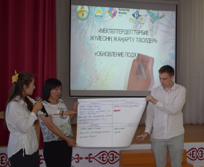 Секция жұмысы барысында буллинг және кибербуллинг мәселелері бойынша 3 топта тренингтік сабақтар, тәрбие жұмысының негізгі бағыттарына SWOT-талдау жүргізілді, жаңа оқу жылындағы тәрбие жүйесіне тәсілдерді жаңарту бойынша ұсынымдар берілді.